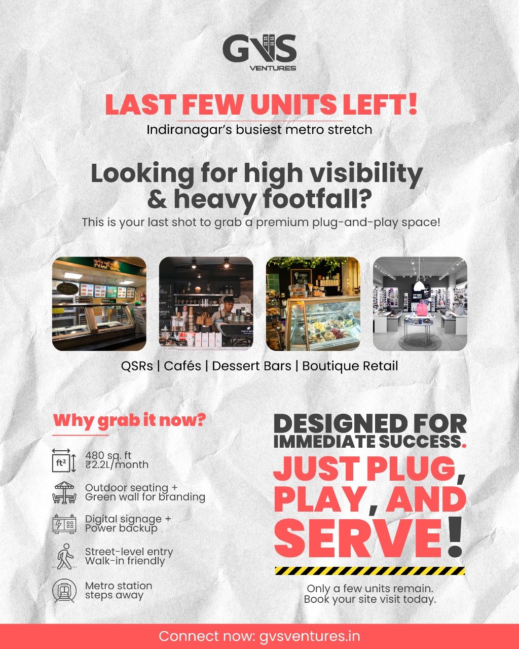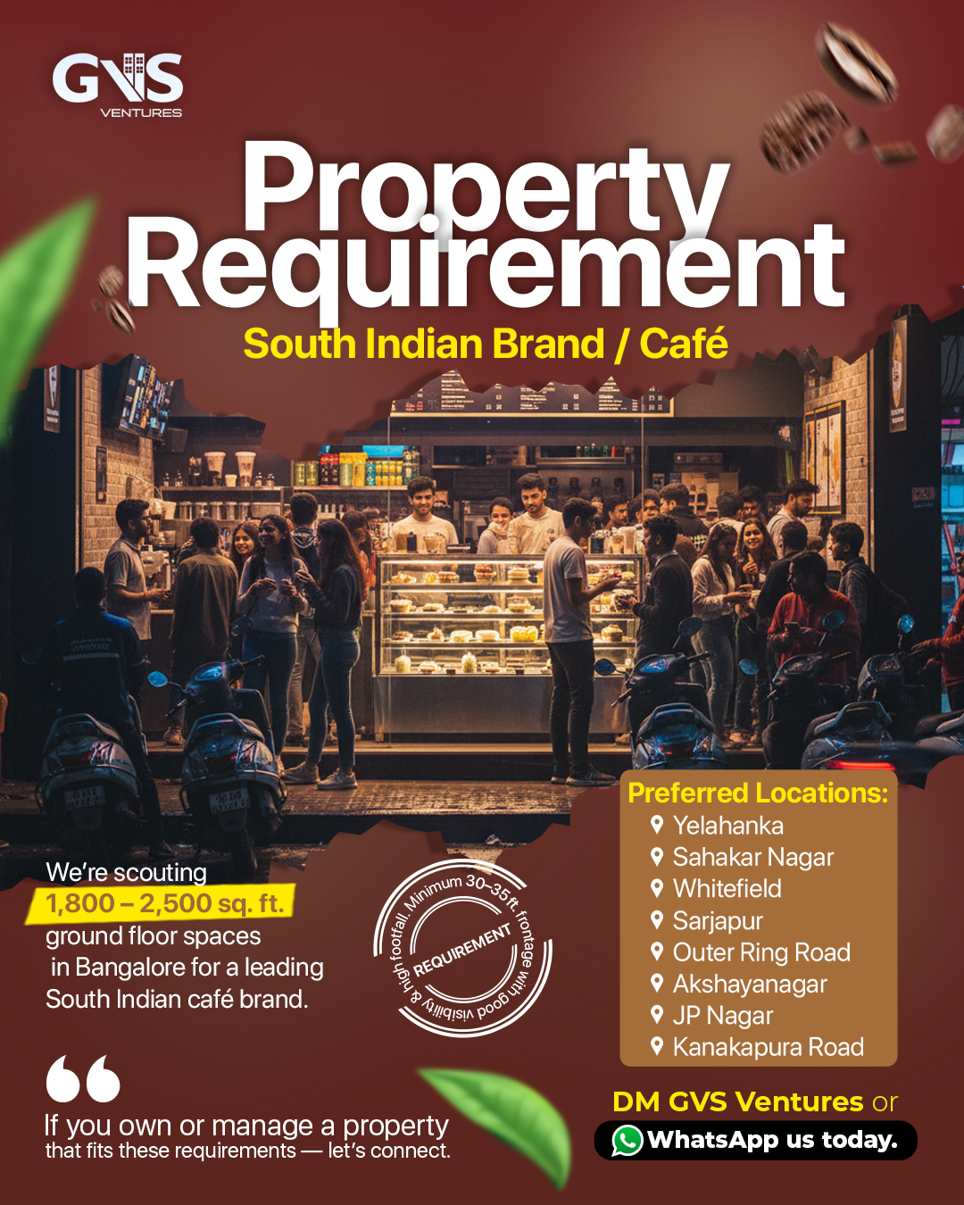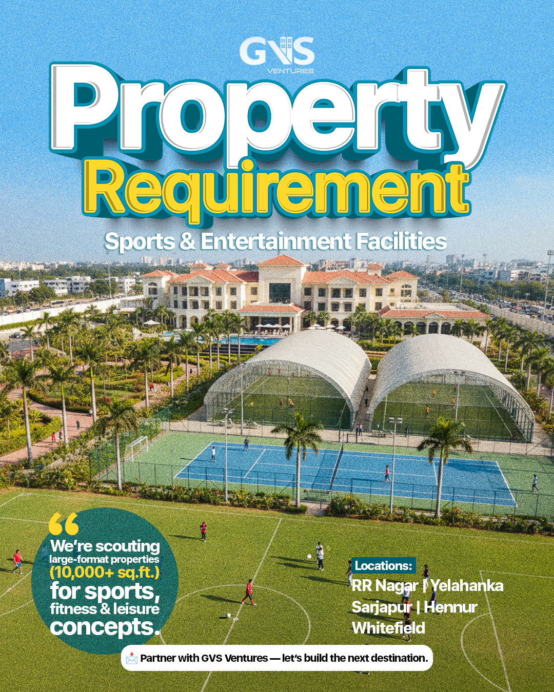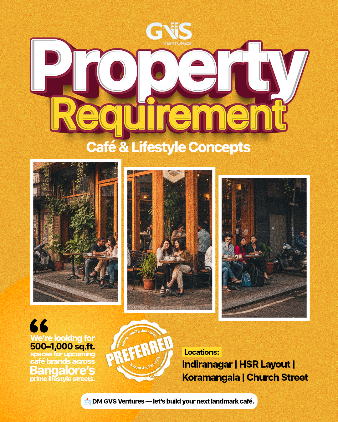 GVS Ventures connects brands with prime commercial real estate across Bangalore, specializing in properties for the F&B, retail, and entertainment sectors. We streamline property solutions through expert leasing, strategic location sourcing, and trusted partnerships.